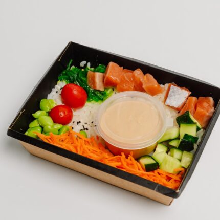 Жаркын жана өзгөчө тамак: өз-өзүнчө тизилген жашылчалар жана азыраак туздалган кызыл балык