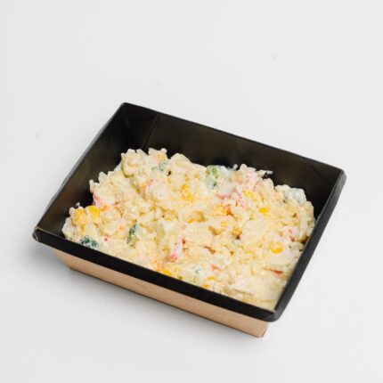 Кайнатылган күрүч, краб таякчалары жана жаңы бадыраң менен салаты