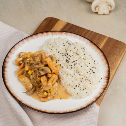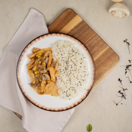 320сомКуриная грудка с булгуром и бобами XL 430 гр