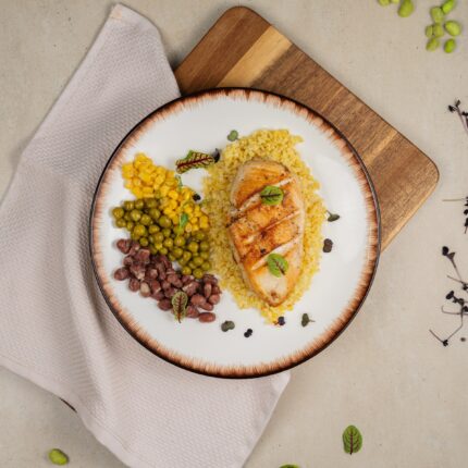 Большая порция нежнейшей куриной грудки с булгуром и бобами