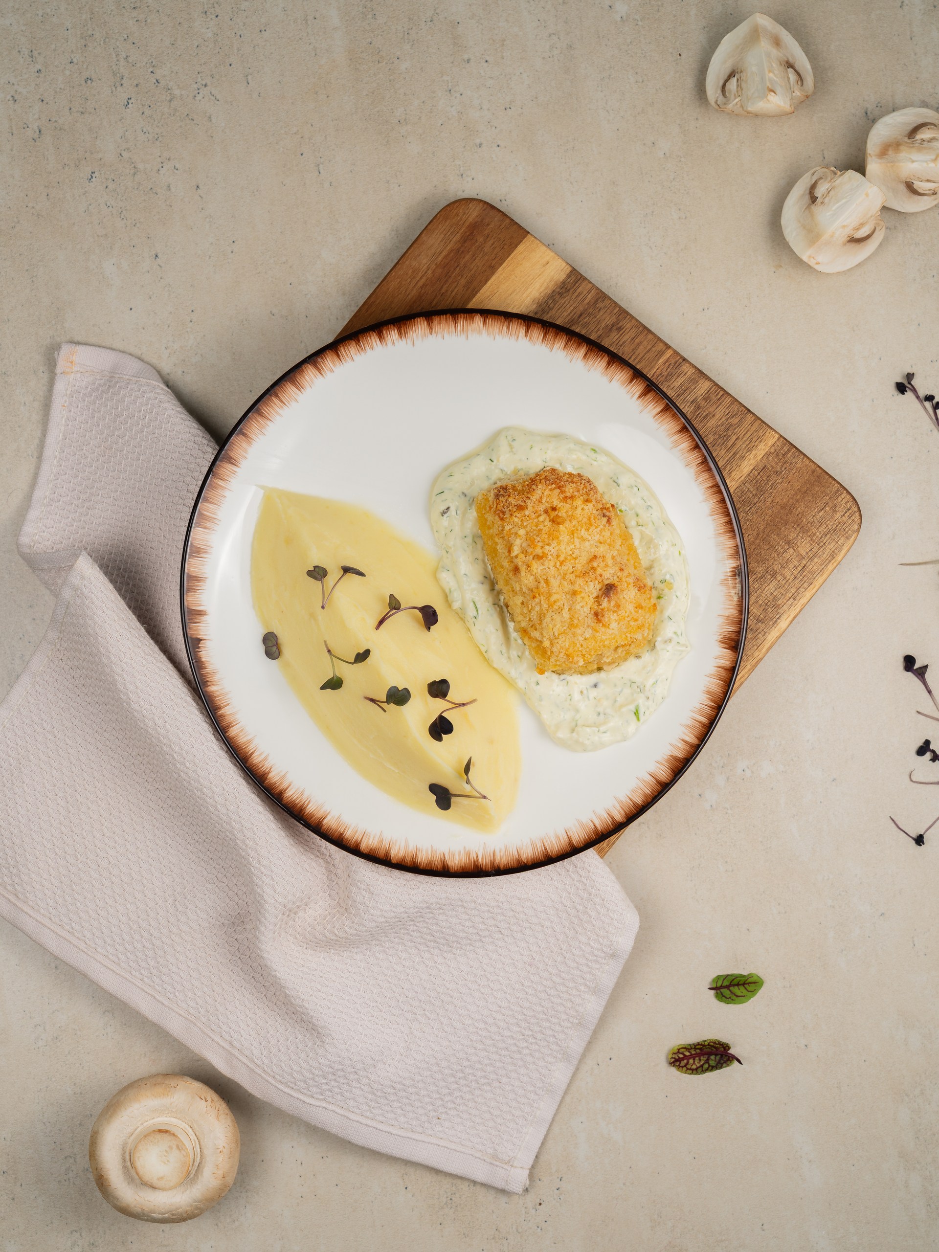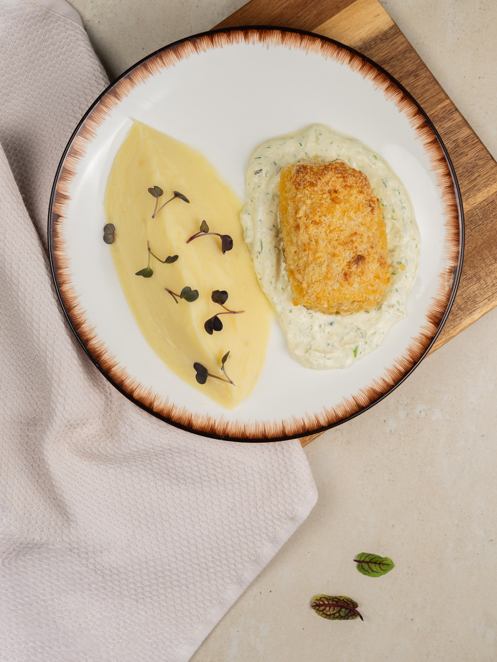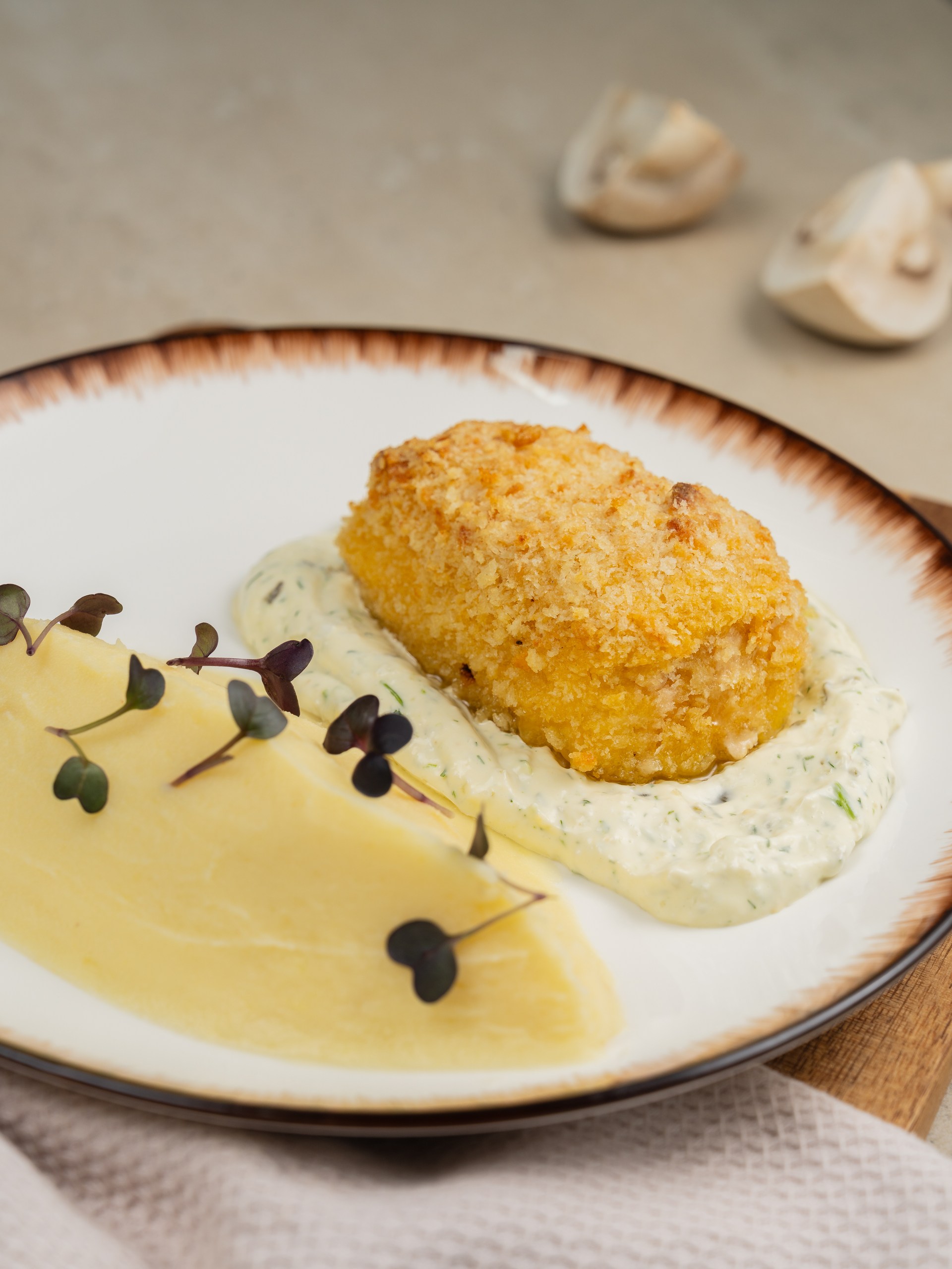 Котлета в панировке с начинкой из масла и зелени, с пюрешкой