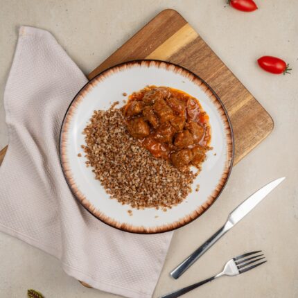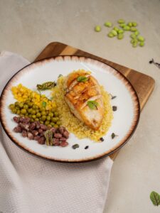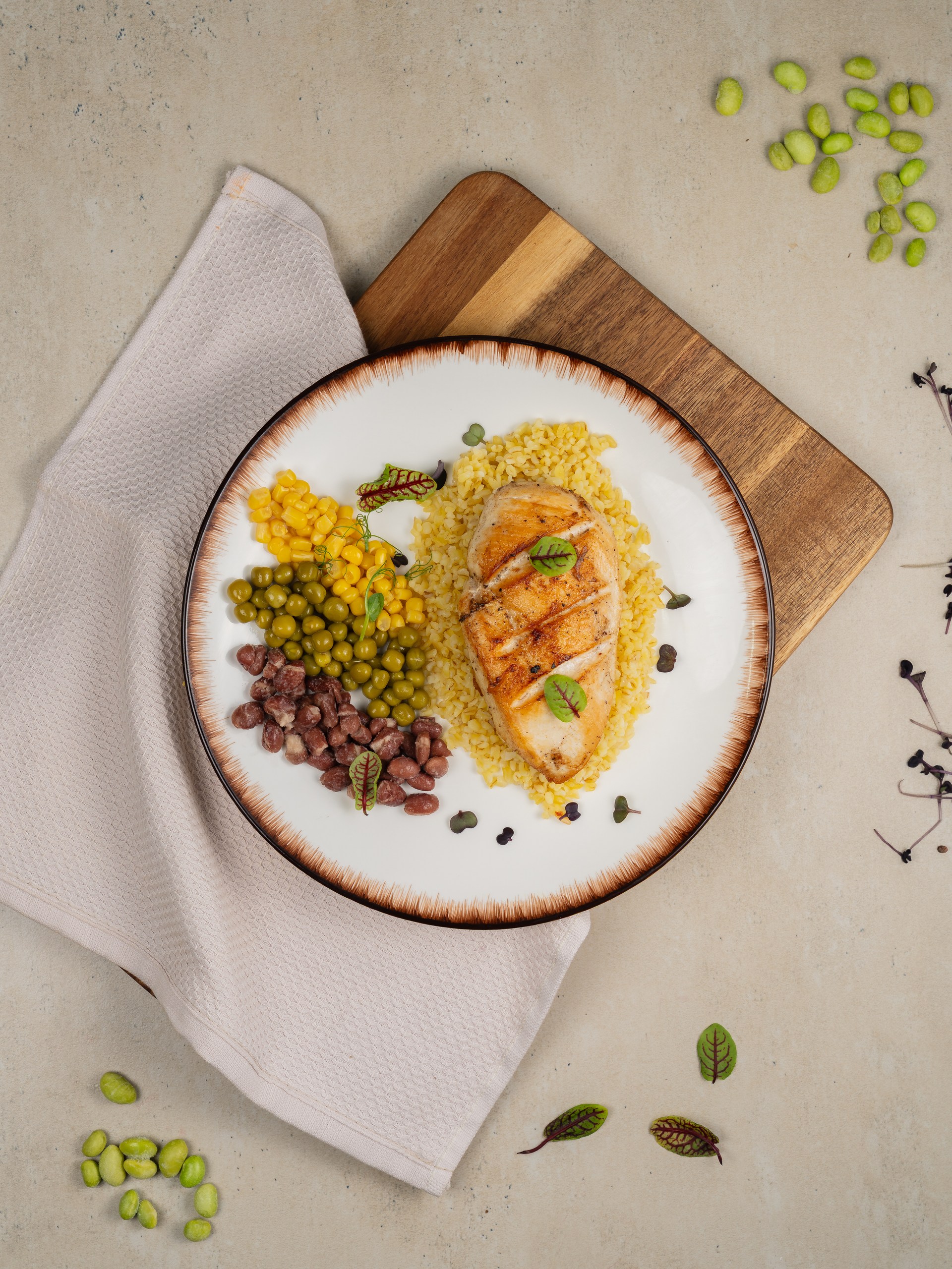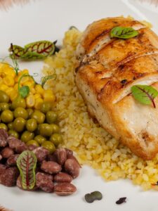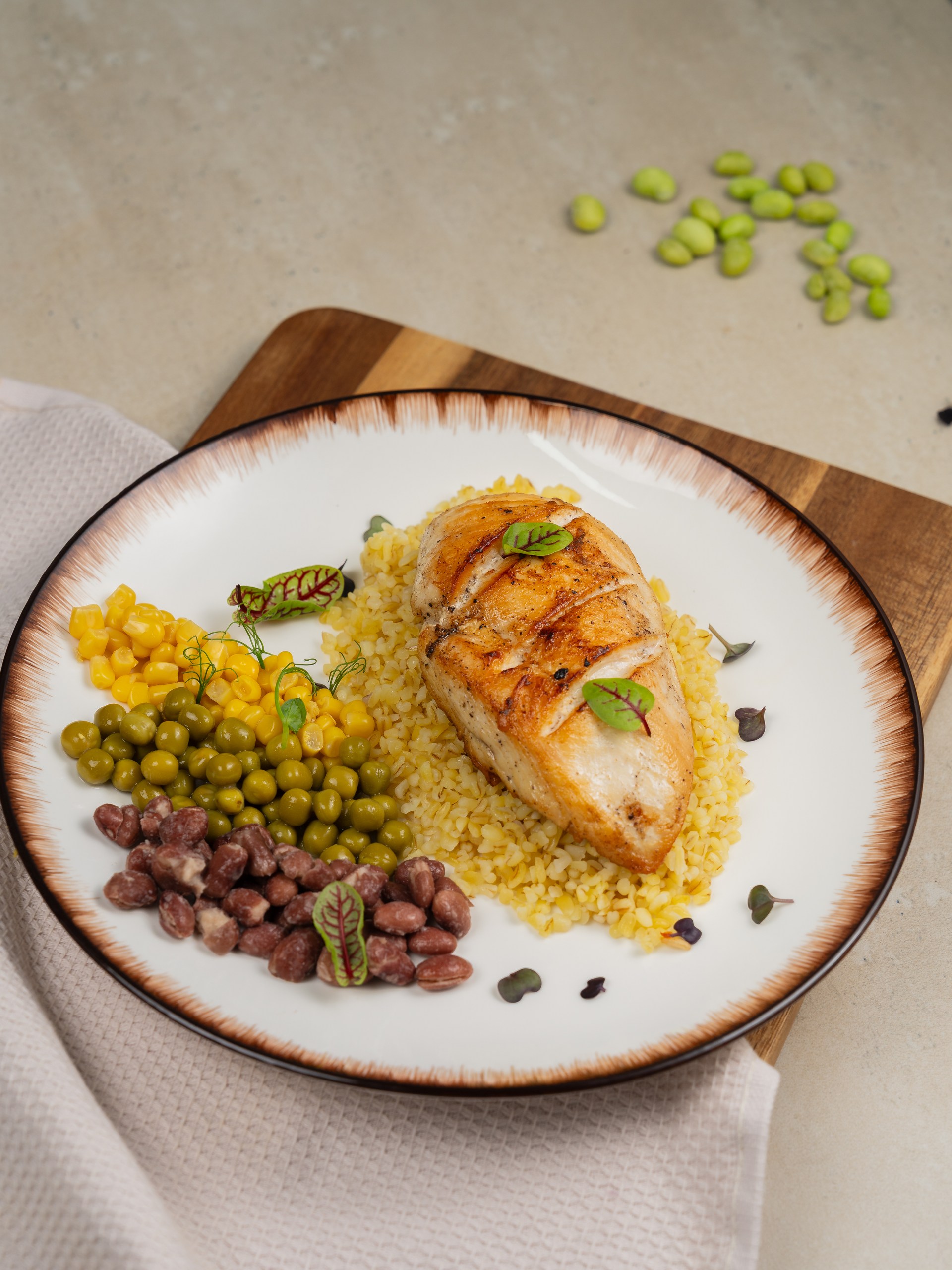Большая порция нежнейшей куриной грудки с булгуром и бобами