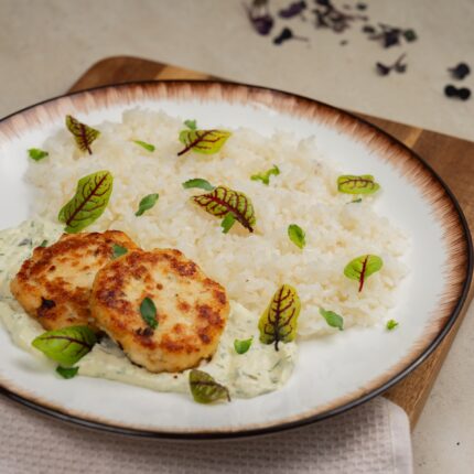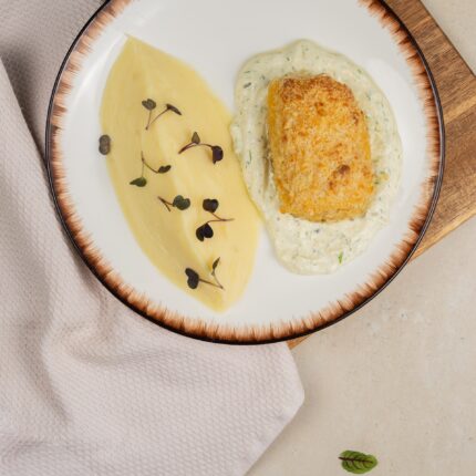 Котлета в панировке с начинкой из масла и зелени, с пюрешкой