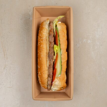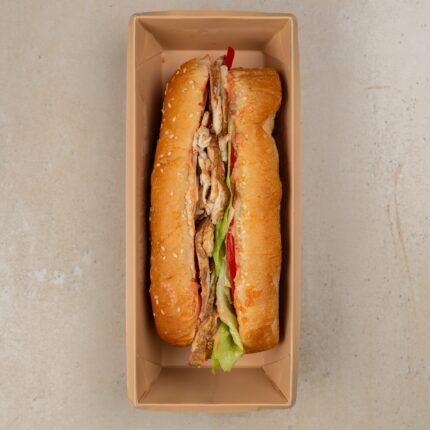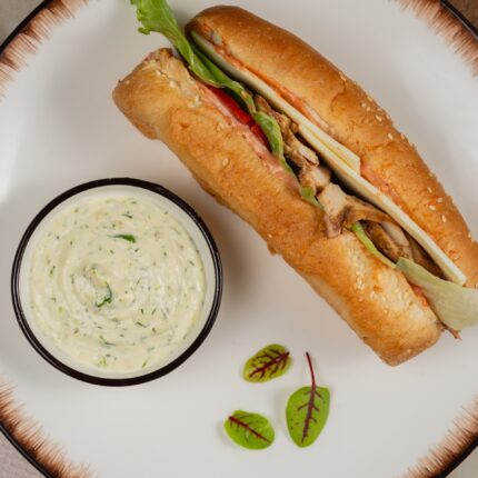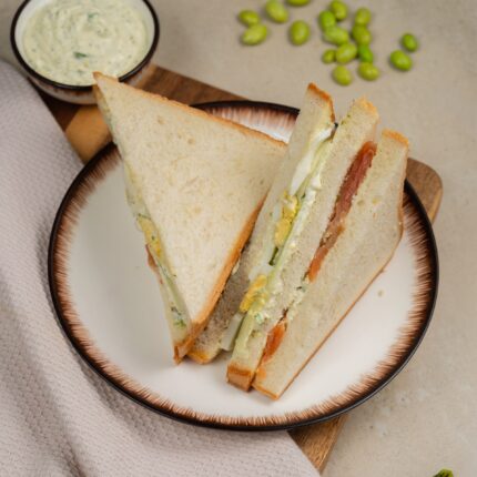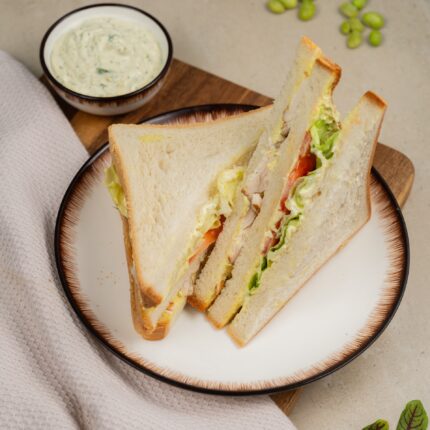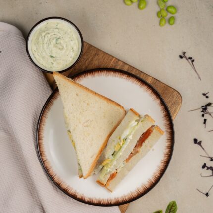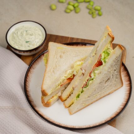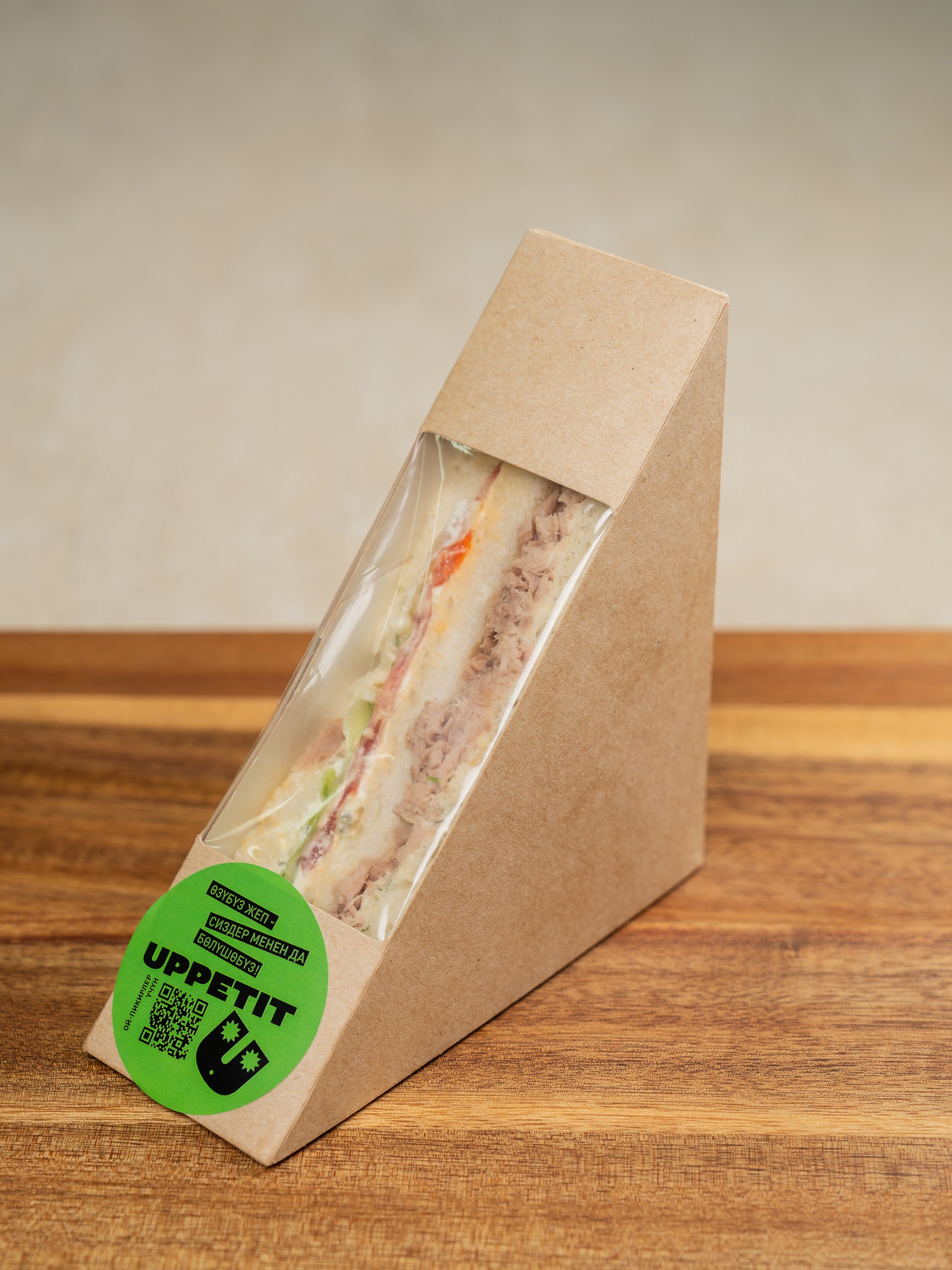 Состав: хлеб тостовый пшеничный, тунец консервированный, соус «Тартар»(майонез, яичный желток варёный, огурец солёный, укроп свежий, лимонный концентрат, сахар, соль), салат «Айсберг», помидор.