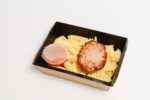 Паста (фузилли, туз, күн карама майы), котлет (муздатылган чочконун эти, уй эти, тооктун жамбаш эти , пияз, суу, батон, 2,5% сүт, күн карама майы, жумуртка меланжы, нан күкүмдөрү, жаңы сарымсак, уйдун кургак шорпосу, туз, татымал), соус (өз ширесинде помидор, кызыл калемпир, пияз, сабиз, балык соусу, шекер, сарымсак, күн карама майы, сарымсак майдаланган, кара калемпир )